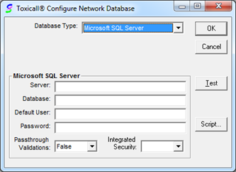 If toxiCALL® is being implemented into a new environment, you will be presented with the “Toxicall® Configure Network Database” window.