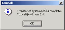 When you have finished editing the system table, close the system table by clicking the x button in the upper right corner. The message box below will appear.
