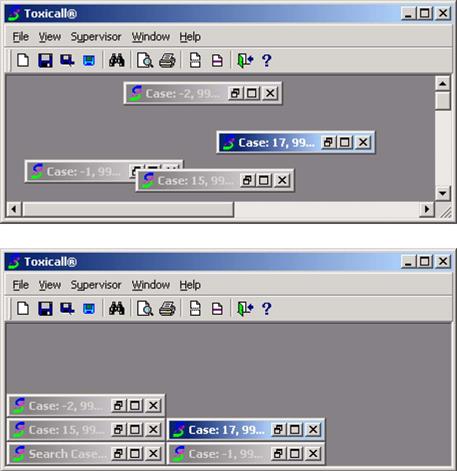Selecting the Window menu and then Arrange Icons will arrange any minimized windows and place the ionized windows together. The first window illustrates unarranged windows, the second window shows the screen after Arrange Windows.