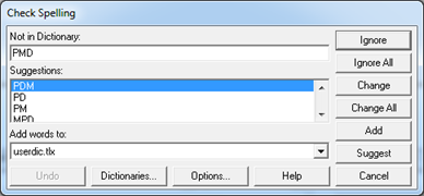 9. Press “OK” to close the “User Dictionaries” window. Press “Cancel” at the “Check Spelling” window to return to the case entry screen.