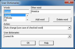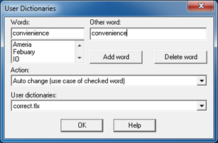 4. Ensure the “User Dictionaries:” dropdown is set to “correct.tlx”.