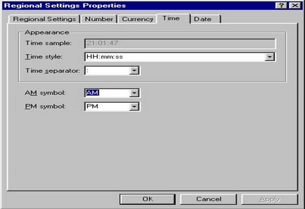 then Regional Settings. On the pop-up, click Time and choose either ‘H:mm:ss’ or