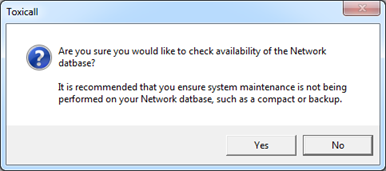 2. Press the grey network database icon to check for network availability. A prompt will appear asking if you are sure you would like to check the availability of the network. Select “Yes”.