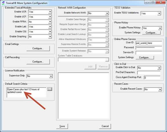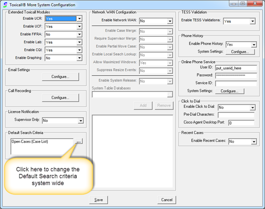 6. The “Default Search Criteria” is now updated in the “Toxicall® More System Configuration” window.