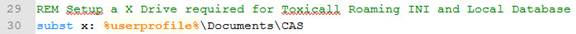 In this example, the path to the local database would be updated to “X:\” drive location or otherwise as needed (wherever the “ToxiLoc.mdb” and “Toxicall.ini” files will be stored for each user).