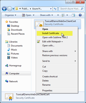 2. Right-click on the certificate and select “Install Certificate” from the context menu.