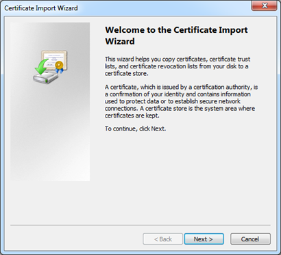 NOTE: Installation of this certificate requires local administrator rights to the workstation.