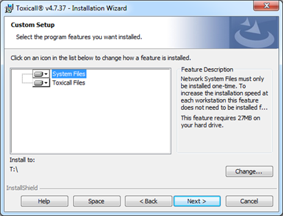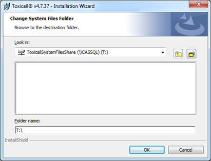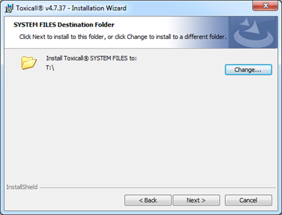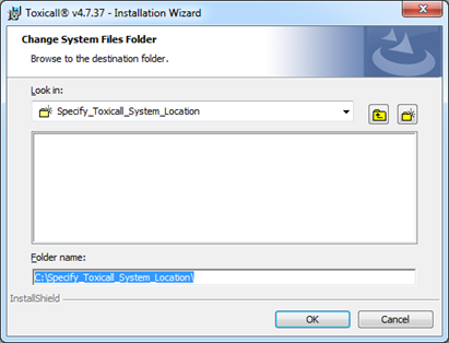 IMPORTANT NOTE: DO NOT leave the path set to “C:\Specify_Toxicall_System_Location”. This will cause the system files to install to your local hard drive and toxiCALL® will NOT function properly.