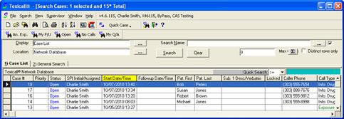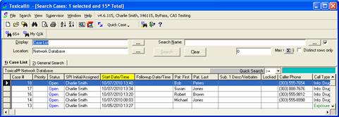 The following screen shot shows the “Michelle Smith’s Quick Search Toolbar” loaded. The toolbar at this point is also now loaded within the TOXICALL® main window.