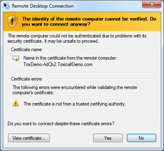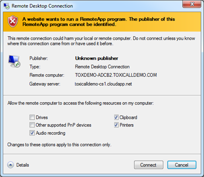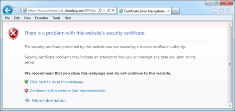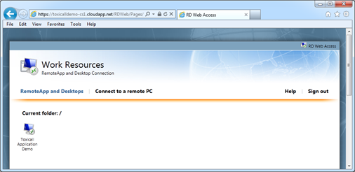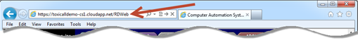 2. Enter the following address into the address bar: https://toxicalldemo-cs1.cloudapp.net/RDWeb and press “Enter”.