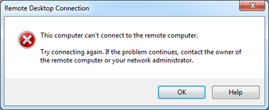 8. In the event you receive a message “This computer can’t connect to the remote computer” (shown in the following image), simply select “OK”, and attempt to connect again.