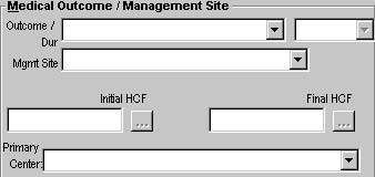 The Medical Outcome and Management Site fields assist in tracking the final case resolution and outcome.