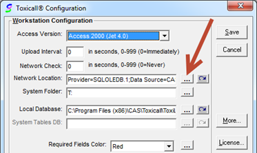 While not a typical configuration, toxiCALL® does support the ability to use a Microsoft® Access database as your primary network database when the use of a SQL Server (including Microsoft® SQL Server Express) solution is not an option. To update the configuration settings, select the 3-dot lookup button to the right of the “Network Database” field.
