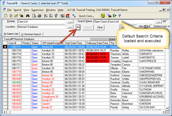 Search Criteria” icon on the toxiCALL® search window. The icon is located just