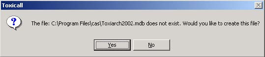 It will pop up a warning message reminding you to copy system tables so that data will resolve. Click OK. When it brings you back to this screen you are ready to save the file and close as described in the Adding New Entries section. When you have reopened TOXICALL®, go to the Tools menu and select Copy System Tables. The window will ask you for the source and destination databases. The source should be set as your network database and the destination as your new archive database (which should now be visible in the dropdown). Click Start and then OK in the message box that alerts you that this action cannot be aborted once started. A series of windows stating that they are transferring system information will be displayed. When complete, it will give a new message box that TOXICALL® will now exit. Upon restarting TOXICALL®, the archive file is ready to use.