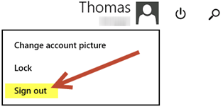 3. Select the account name / picture to access the “Sign Out” option.
