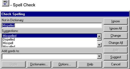 Clicking the spell check button will run a spell check on Open Case Notes. If a misspelled word is located, a Check Spelling window will be displayed.