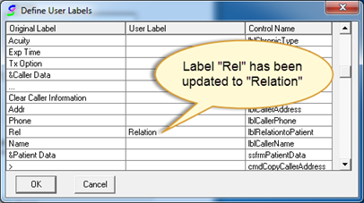5. Locate the “Original Label” you would like to change, and type the desired label into the” User Label” area.