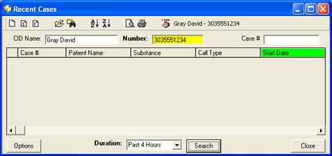 Case: Opens a new TOXICALL® chart with FIFRA module if enabled.